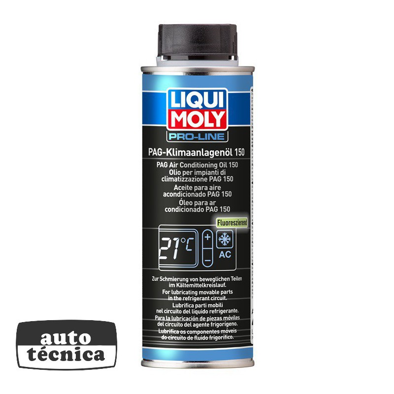 Aceite sintético fluorescente a base de polialquilenoglicol para acondicionadores de aire, compatible y mezclable con el R134a. No apto para circuitos de agente frigorígeno que utilizan R1234yf ni tampoco para vehículos híbridos y eléctricos con compresores de accionamiento eléctrico. 250ml