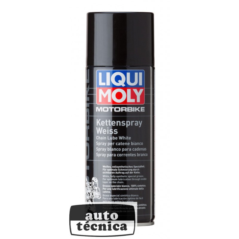 Grasa sintética blanca especial, para una lubricación óptima gracias a la aplicación visible en la cadena. Resistente al agua fría, al agua caliente y a las salpicaduras de agua. Gran poder de adherencia y protección antidesgaste. Reduce el alargamiento de las cadenas y aumenta su vida útil. Buena capacidad de penetración y buena protección anticorrosión.